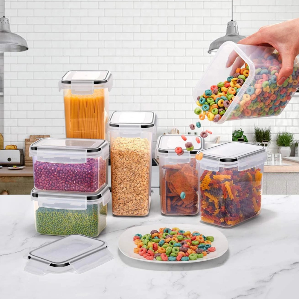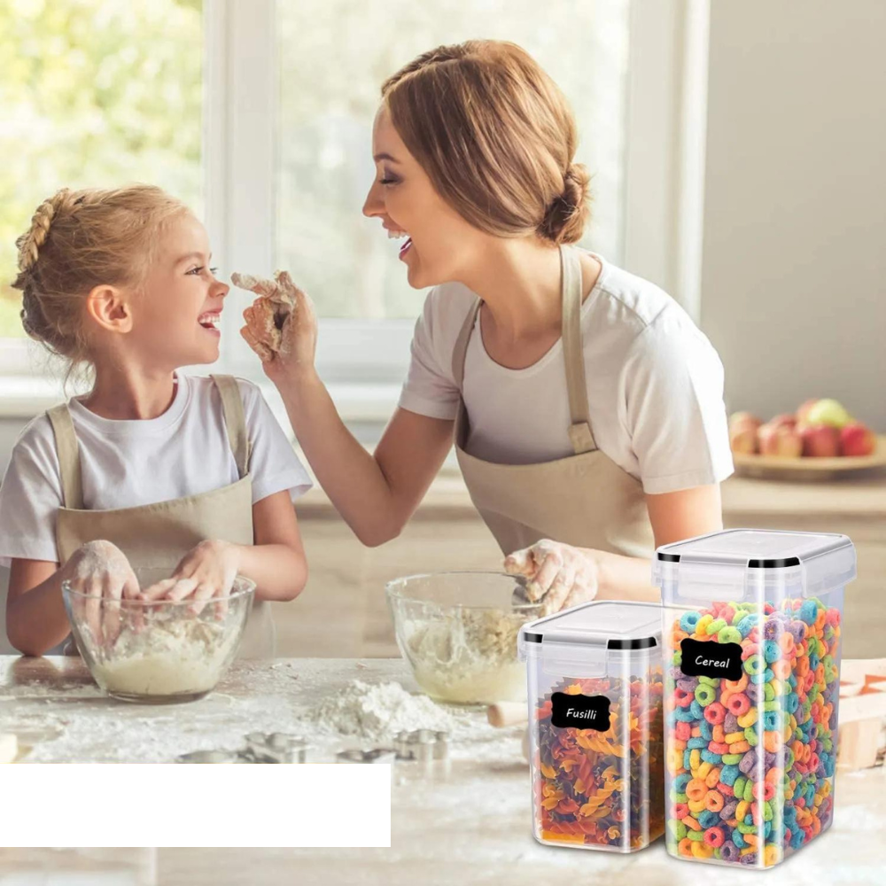 O conjunto inclui diferentes tamanhos para se adequar às suas necessidades de armazenamento, desde grãos e cereais até pequenos petiscos.